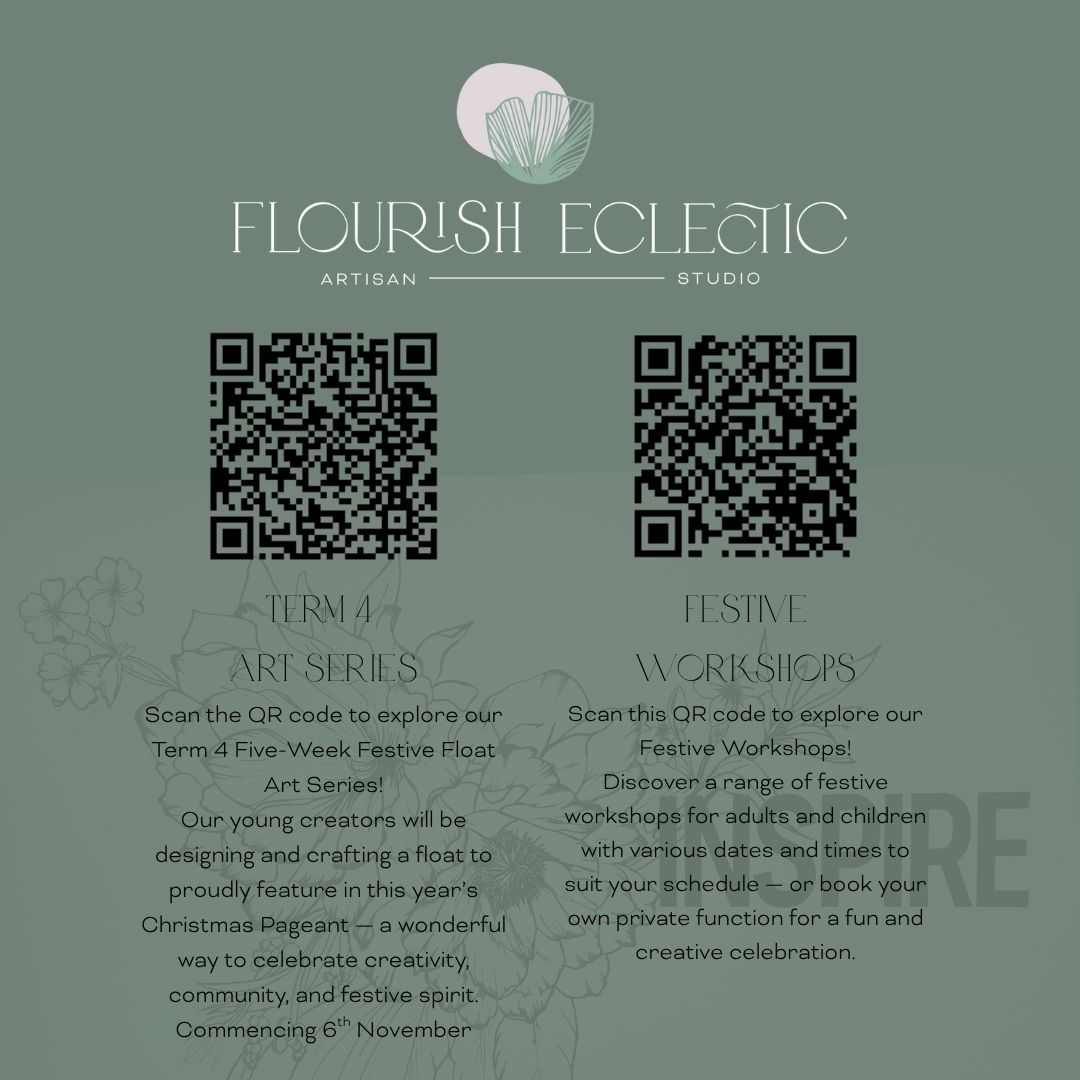 We’re excited to share some festive fun happening at Flourish Eclectic’s Inspire Studio in Albany this term and leading up to Christmas!
