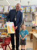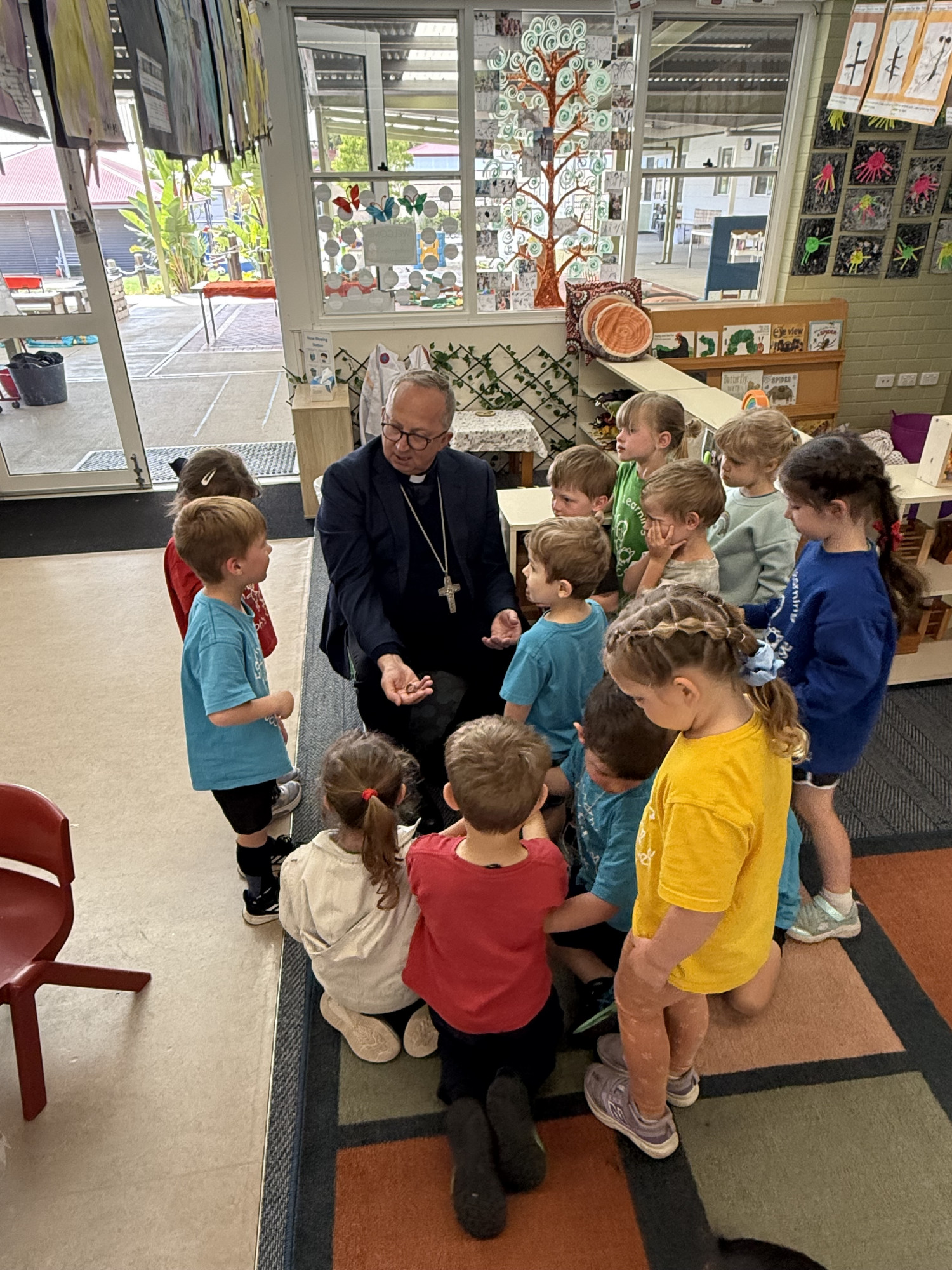 Bishop George visited the College twice as part of his trip and loved spending time walking into classrooms, having discussions and answering questions from the students. The students especially loved to see his ring and Crucifix that was gifted to him by Pope Francis at his Ordination in March.