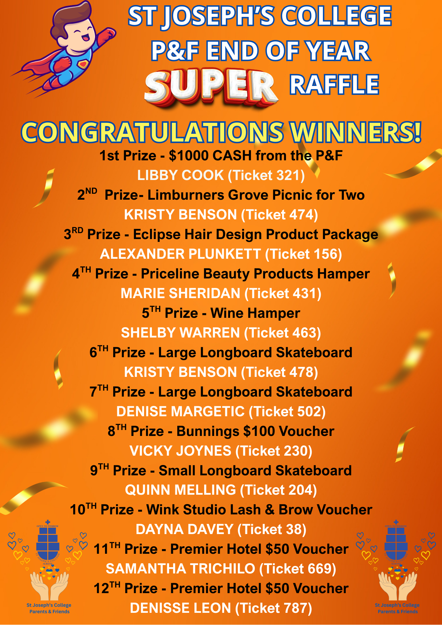 2025 St Joseph's College P&F End of Year SUPER Raffle