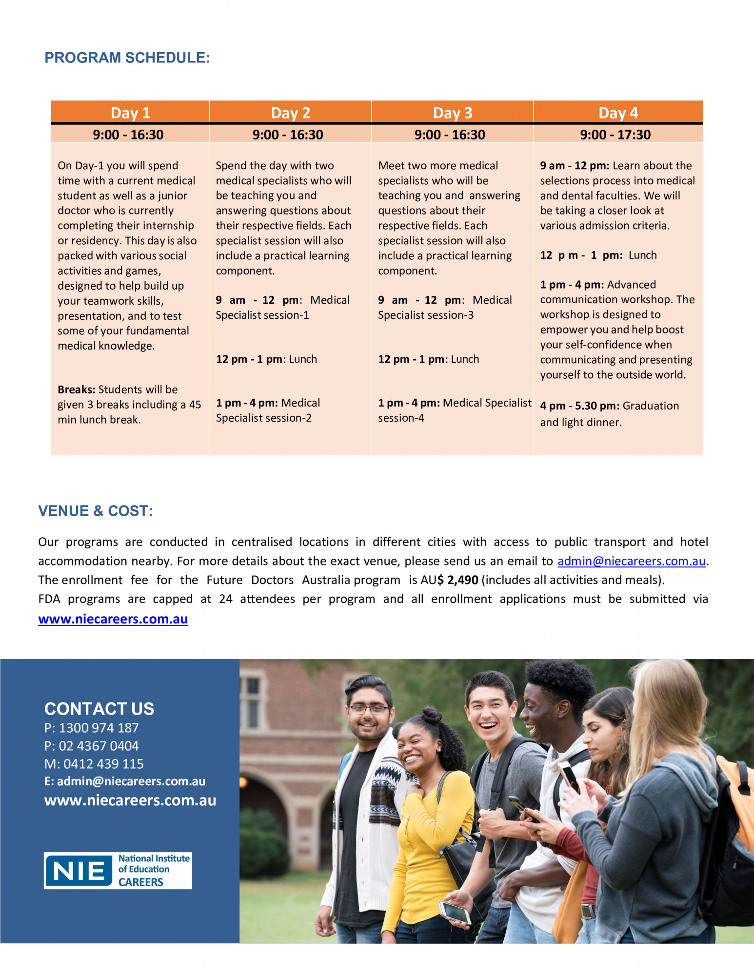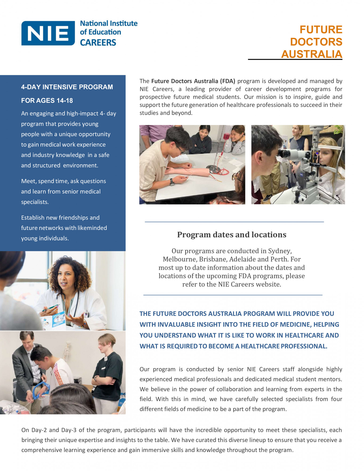 We would like to inform students who are interested in pursuing a career in medicine that spots for The Future Doctors Australia 2026 program are filling up