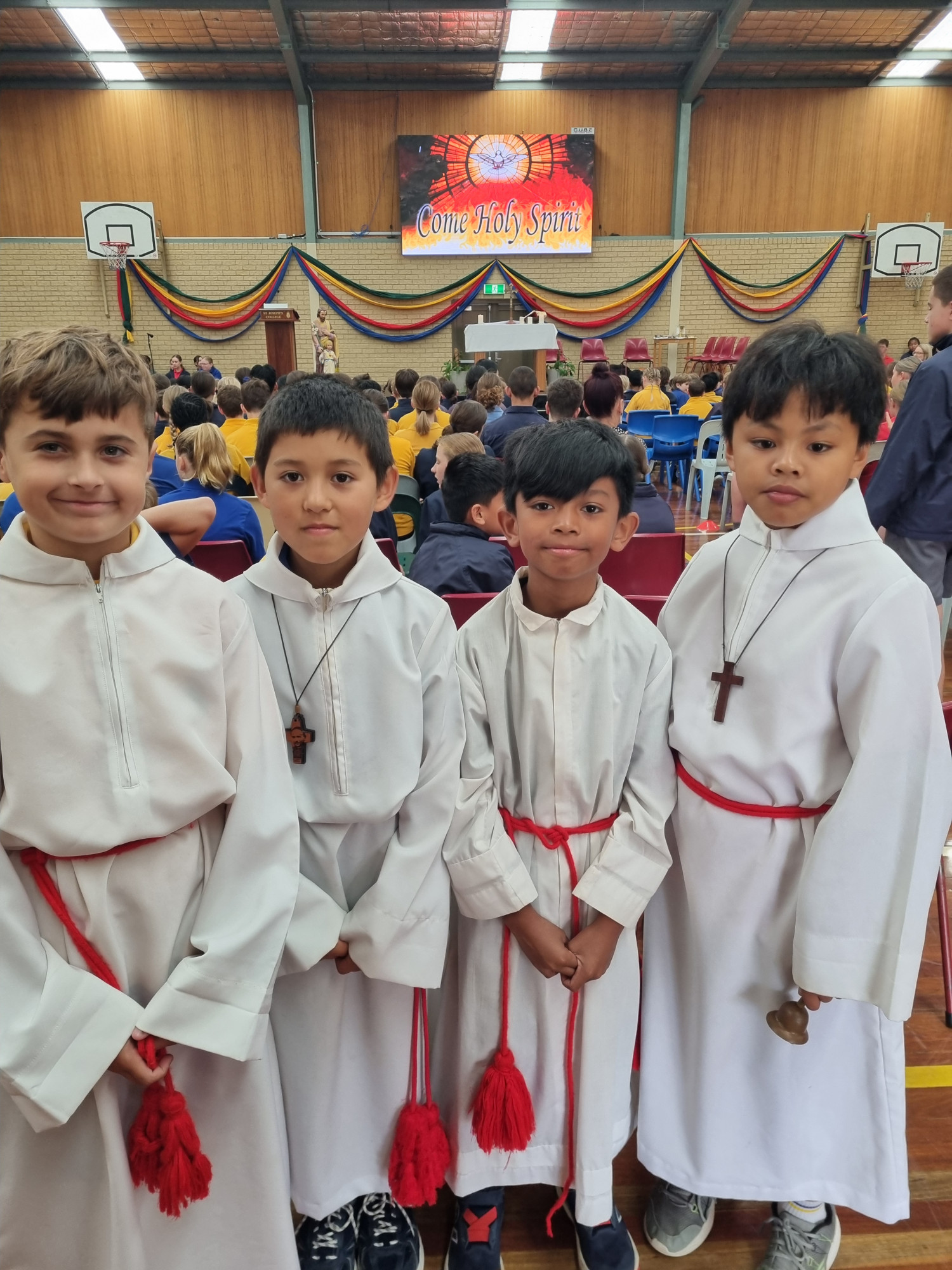 My Year 8 Religion students reflected on our Opening Mass when we had class afterwards, and they all fondly remembered a number of things. Eucharist, the priest's blessing us with holy water, the school flags, the singing, and Fr Marvin's homily when he unpacked a kite! We are all like a kite sitting on the ground, and the wind is the Holy Spirit which lifts us to great heights in our connection with self and others in our everyday lives. Fr Marvin also blessed the 2026 Prefects and their badges. Celebrating the sacrament of holy eucharist as one school, was such a wonderful start to the year. Thank you to all parents and friends who came along.