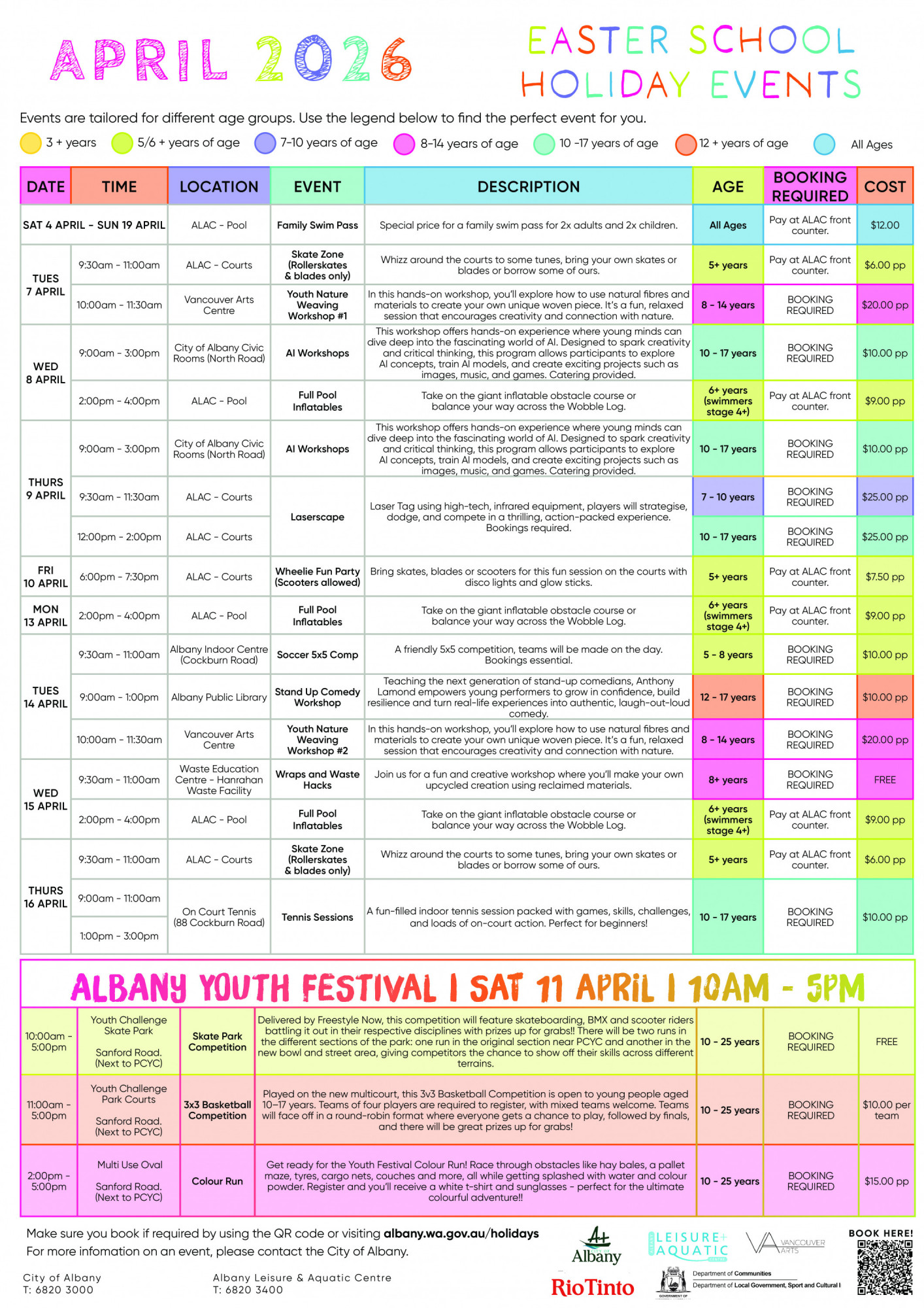 Albany Leisure and Aquatic Centre will be running a 2-day Bronze Medallion Course on Saturday 11 and Sunday 12 April 2026 (the middle weekend of the school holidays), from 8:00am – 3:00pm each day.