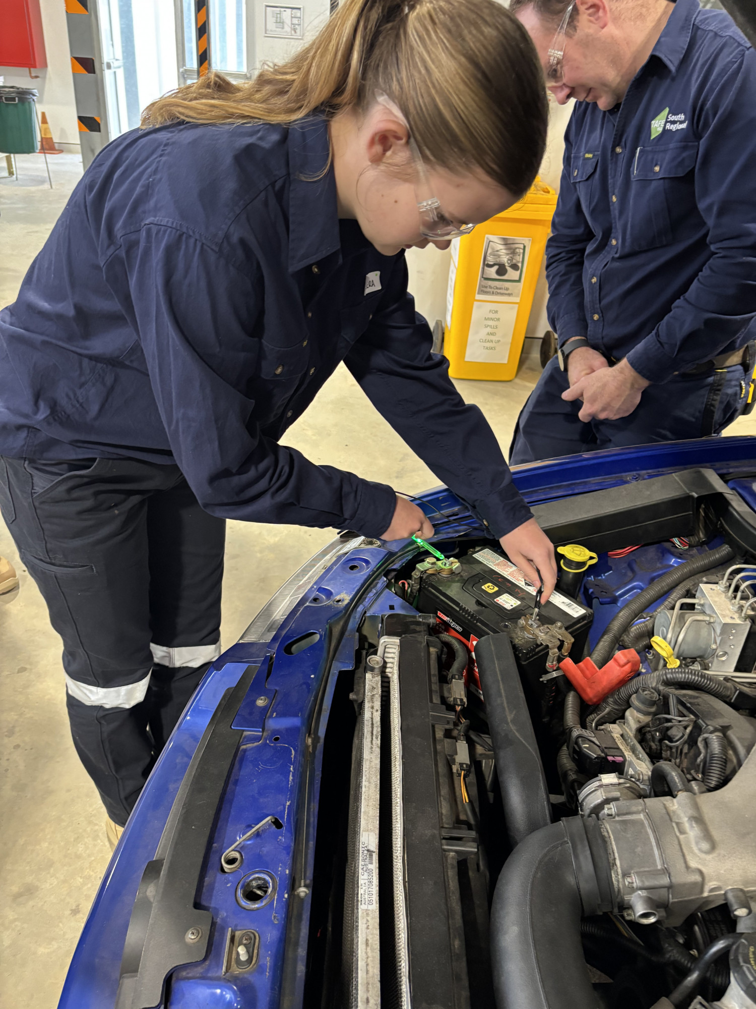 A group of year nine female 'Tradies' descended on SRTAFE on Thursday the 20th of November to learn all of the secrets within the Trade Industry. They learnt a number of new skills within the automotive and electrical domains, as well as enjoying the traditional sausage roll and choc milk at 'smoko'. The girls had a great time, asked lots of questions and were a pleasure to take on the excursion. Thanks to Mrs Coutts for accompanying the students.