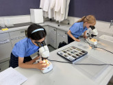 When we walked in, we were amazed to see so many different animals and insects up close. There were preserved snakes, bats, turtles, scorpions, butterflies, and all kinds of bugs. Some were tiny and delicate, while others looked a little scary! We even had the chance to look at some specimens under the microscope, which made us feel like real scientists. Under the microscope, we could see incredible details that we would never notice with just our eyes.