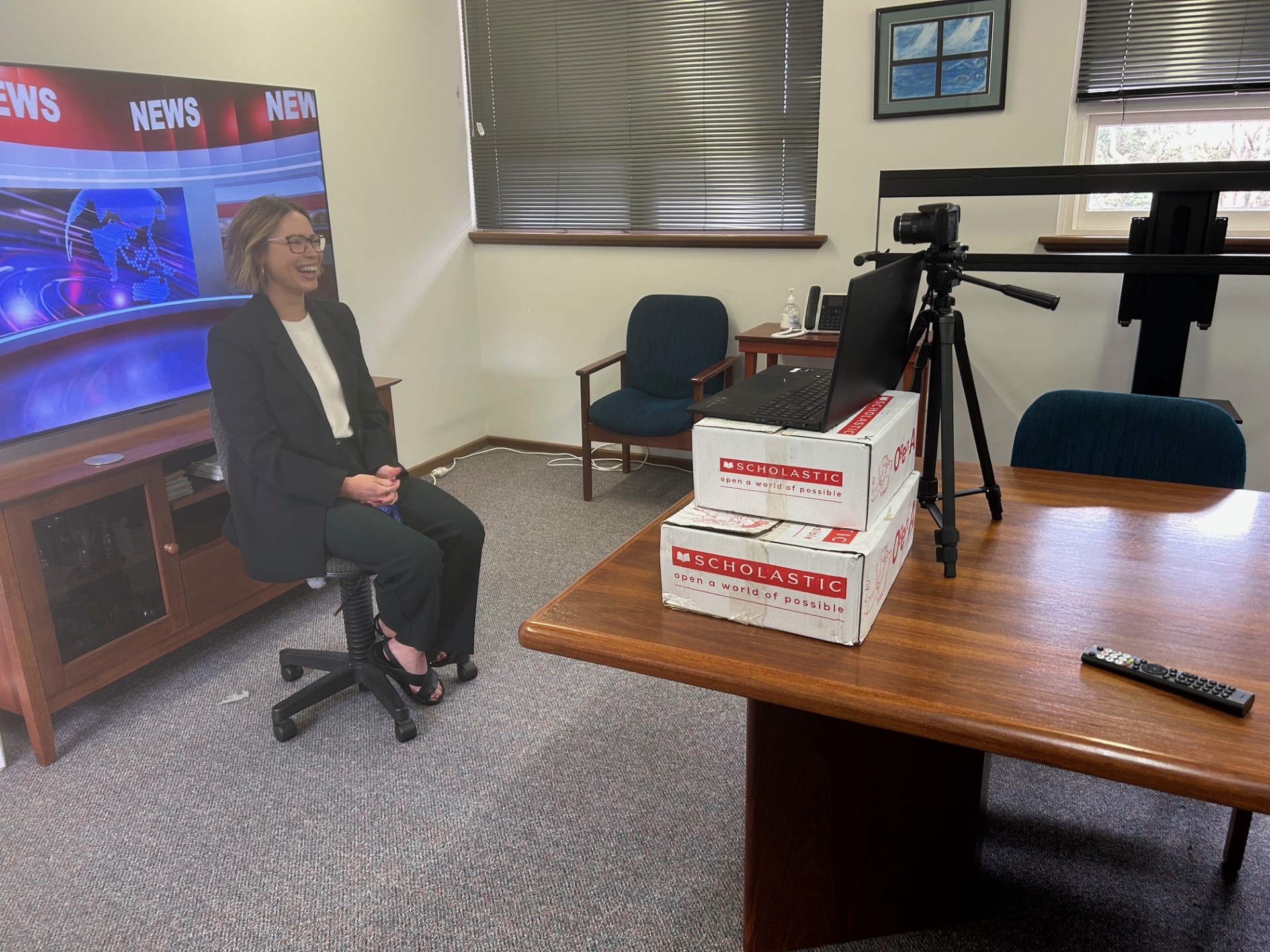 Ms Trichilo was the star of the show, kindly volunteering to act as a news reader in a short thriller being produced by Hamish Rus and Caleb Leak.
