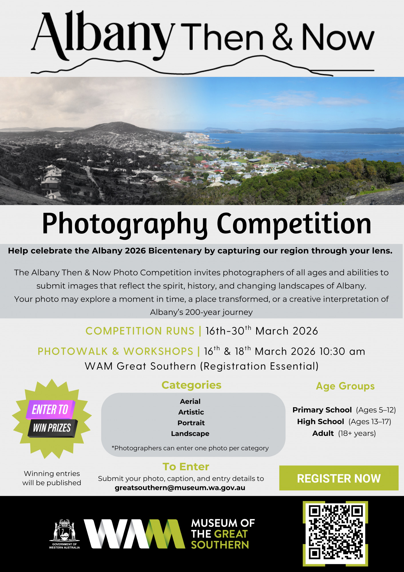 We are excited to announce our Albany Then & Now Photography Competition which commences on 16th March 2026.