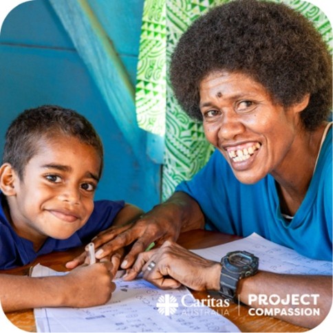 Thanks to the generosity of schools like ours, Manaini joined training offered by Caritas Australia’s local partner, FRIEND. Through the program, she learnt food processing skills to transform leftovers from crops into flour, improving her family’s nutrition and increasing her weekly income to support her children’s education. “The project totally changed the life of my family and even the community,” Manaini said.