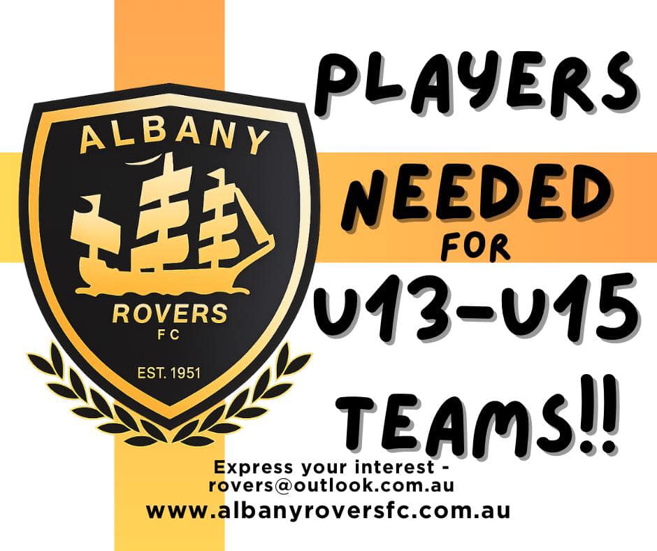 We are aware that some junior soccer clubs across the U13–U18 age groups have experienced difficulty filling teams for the upcoming season. Albany Rovers Football Club is still seeking players for several of our junior teams, specifically U13 and U14/15, and we want to ensure that no young player misses out on the chance to participate this year.