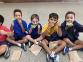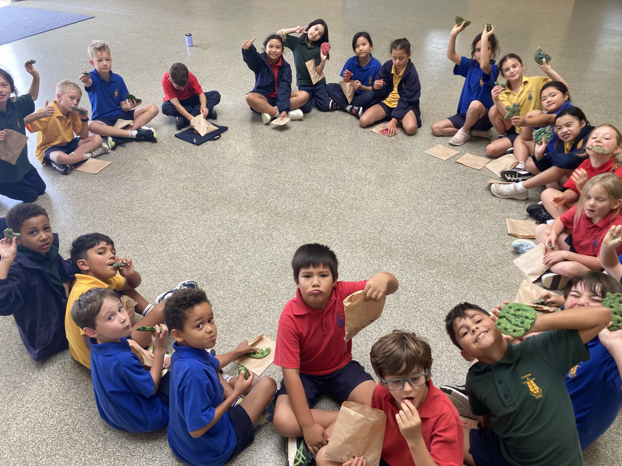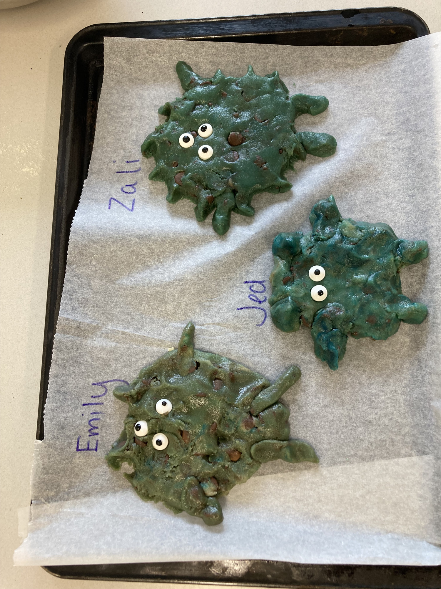 A big thank you to our amazing parents and grandparents who joined us for today’s monster‑themed cookie cooking. The students had a blast mixing, stirring and shaping their chocolate‑chip dough into all sorts of googly‑eyed creations to match our class theme.